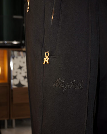 Cotton pants perfect for both any daily, casual activity and as a dress pant for a formal event. Features a double-waist, belt loops, same tone embroidered logo, permanent pleats, custom zippers and open bottom fit.
